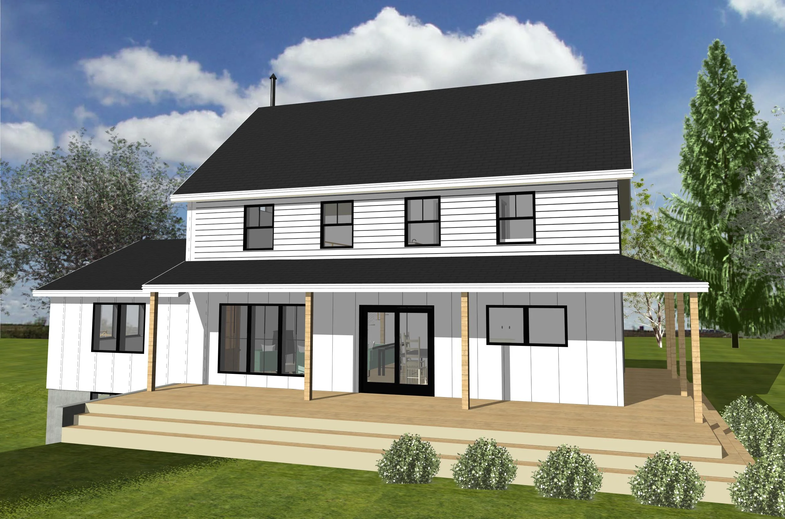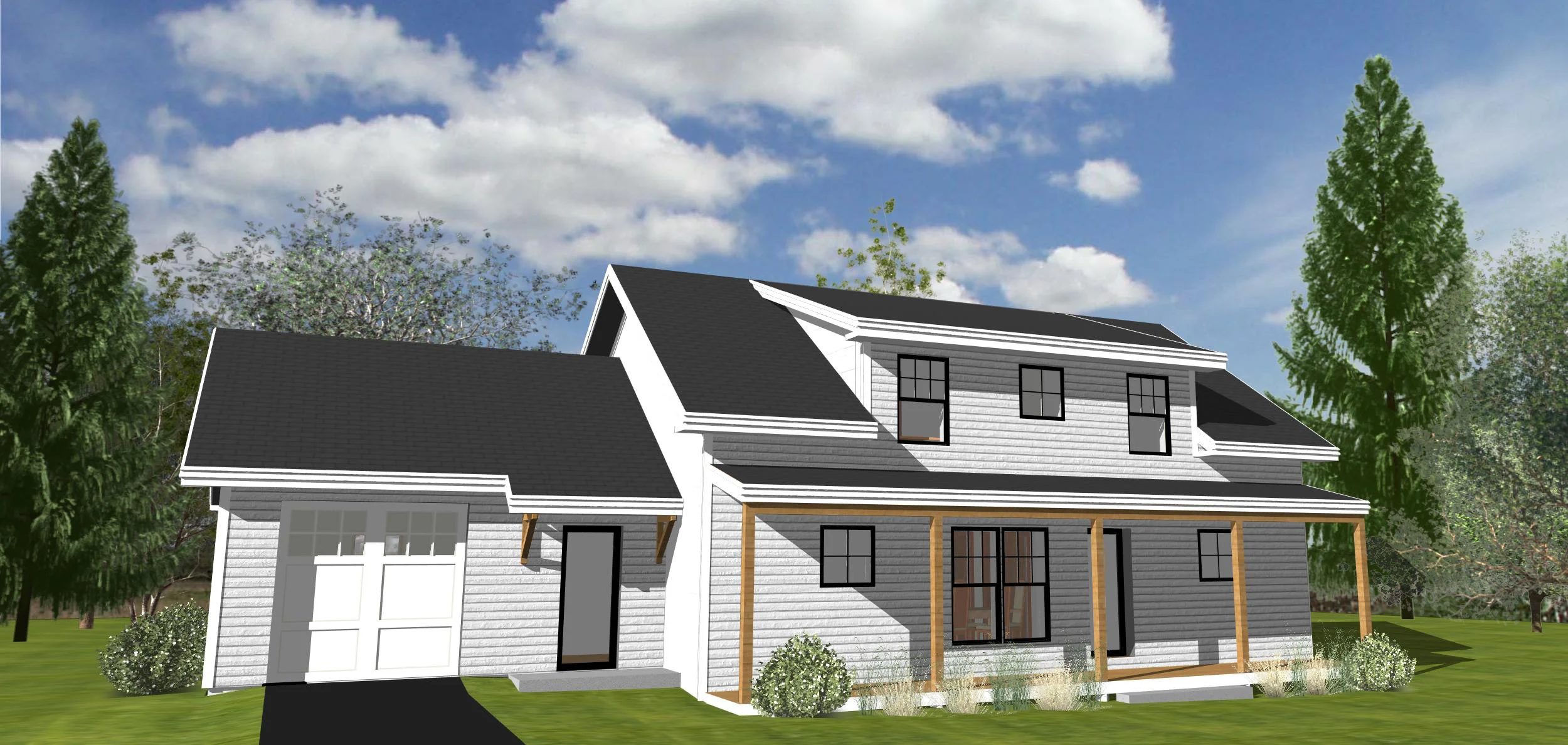 The Cape is a traditional style with a super insulated shell. It is designed with a single car attached garage and first floor bedroom suite. As designed it is a 3 Bedroom, 2.5 Bath that is 2,254 SF. Double stud walls, super insulated construction, Ductless Mini-Split Heating System and Fresh Air ventilation System.
