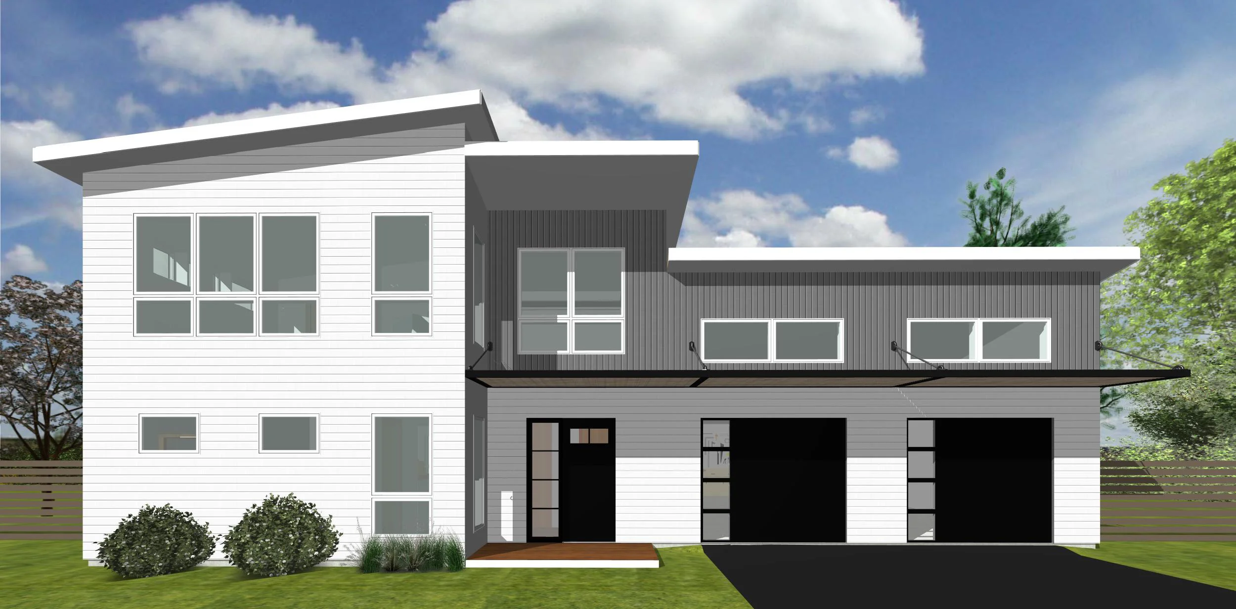 Mini modern has an open first floor plan and an apartment style floor plan separating the bedrooms with bathrooms, closets and utilities. Expand over the garage or pour a full basement for expansion space on this 1,800 SF home. 2 Bedroom, 2.5 Bathroom with attached garage.
